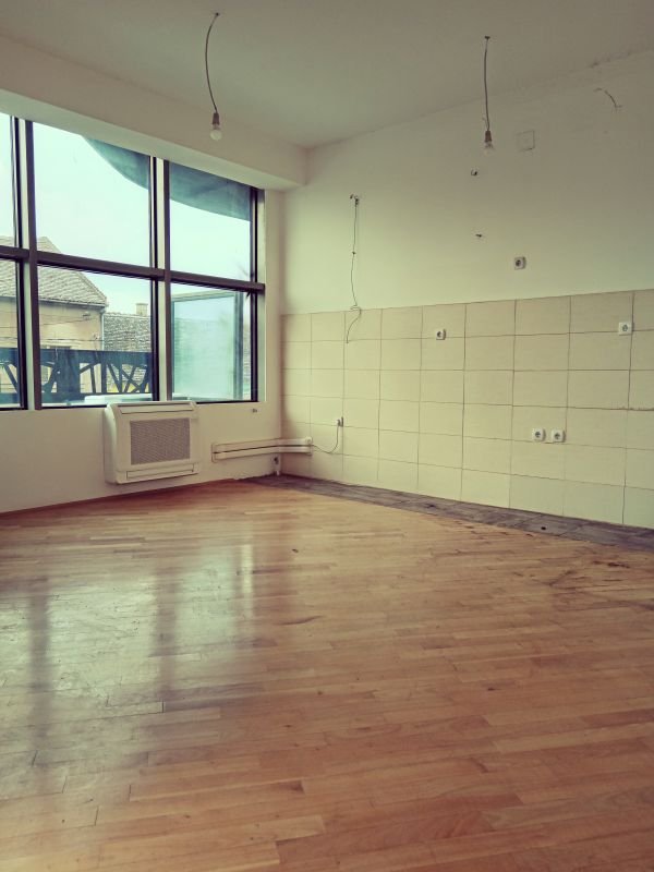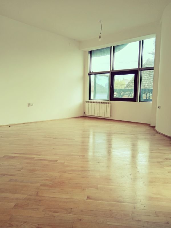 Trosoban stan u centru Zrenjanina, zgrada kod pešačke zone sa pogledom prema Gradskom Trgu. Sastoji se iz hodnika, velike dnevne sobe sa kuhinjom, izlaz na veliku terasu, 2 spavaće sobe, kupatilo i toalet. Stolarija aluminijumska, podovi parketi, grejanje i hlađenje multi sistem midea. Lift u zgradi. Garaža u suterenu (8.000€). Veoma pogodno za poslovnu delatnost, sedište firmi, advokatske kancelarije, knjigovodstva i slično. Uknjiženo.